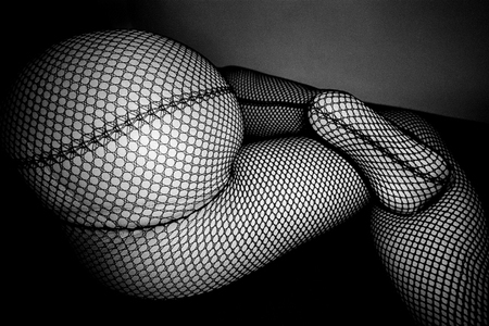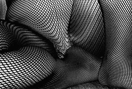 Les résilles ne font pas partie de mon arsenal de séduction, mais ces photos donnent envie d’investir et de jouer aussi un jour avec les lignes qui se déforment pour suivre les courbes, les creux et les plis, jusqu’à perdre un œil et donner un peu la nausée.