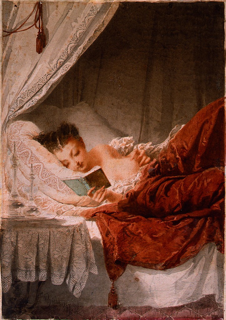 Suivie d’une très jolie Femme lisant qui se tripote le sein de 1867.