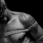 D’un côté, il y a donc le Japon traditionnel avec sa rigueur, ses codes, sa vision très érotisée du corps de la femme et, à l’autre bout du spectre, il y a la fusion des cordes avec d’autres formes d’arts comme la danse classique. On navigue entre une pratique très sexualisée et une autre qui a décidé de s’extraire du spectre du BDSM pour procurer autre chose. Quelque part à mi-chemin, il y a la rencontre de plus en plus en vogue entre méditation, yoga et cordes. Dans tous les cas, il y a toujours des quêtes très particulières. Celle du modèle, plus intérieure, qui l’amène vers les cordes et elle de l’encordeur qui va chercher quelque chose chez le modèle, parfois en allant jusqu’à enfoncer métaphoriquement les mains dans ses tripes pour le trouver : de la beauté, des émotions, une envolée, quelque chose de brut… Et il y a le lien entre les deux, la confiance, l’écoute et l’abandon, essentiels quelle que soit la façon de pratiquer.